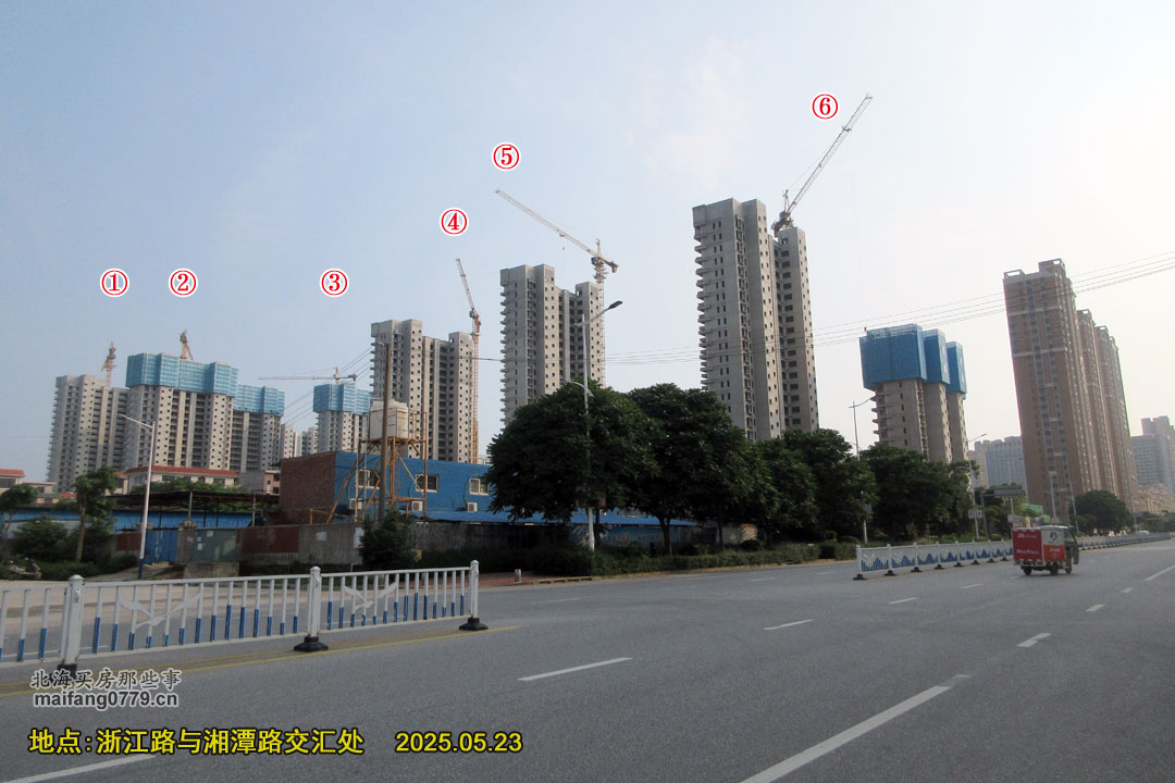 银海区浙江路与湘潭路交汇处有个楼盘也曾经塔吊林立: