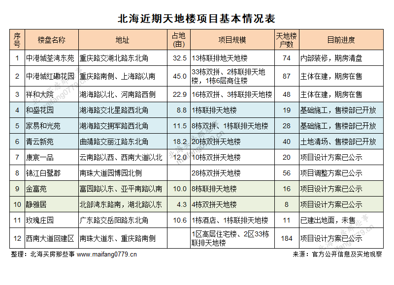 北海近期天地楼项目频频亮相,现在至少出现了12个。