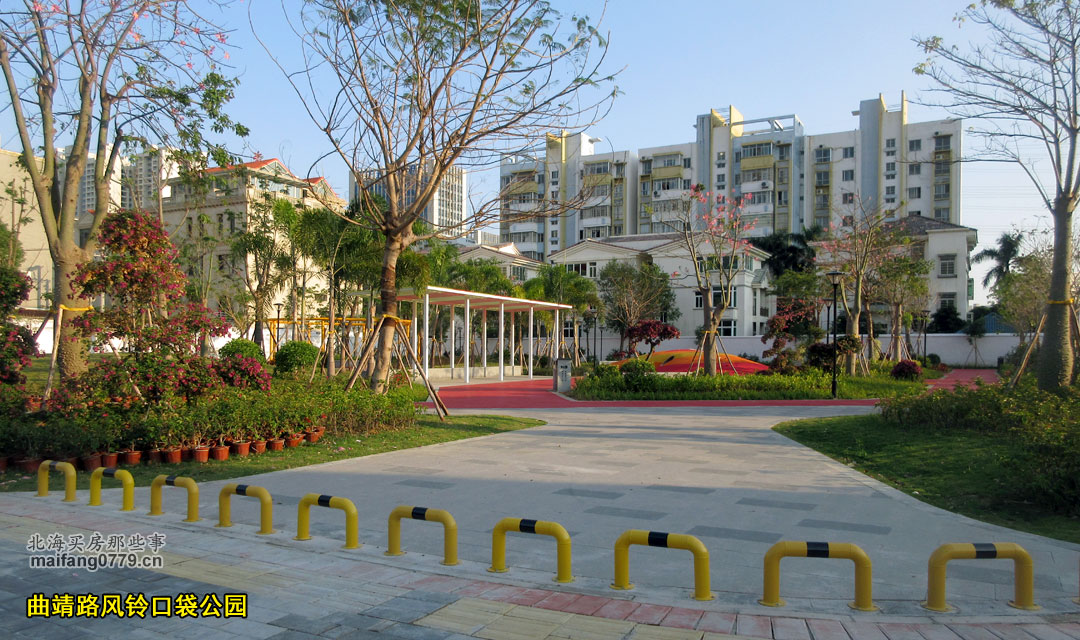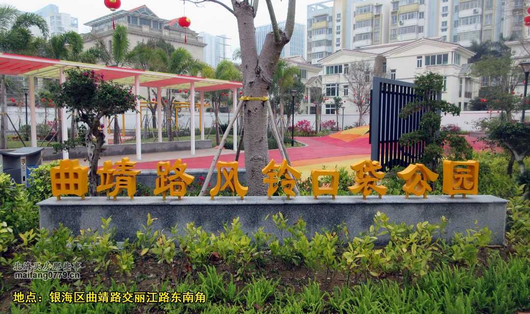 曲靖路风铃口袋公园,位于银海区曲靖路与丽江路交汇处东南角(新世纪大道与西藏路交汇处的东北方向)。