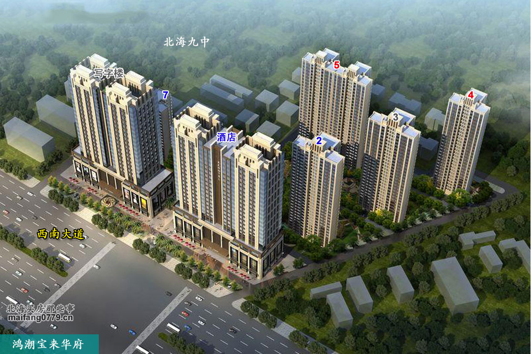 鸿潮宝来华府,位于火车站东北方向、西南大道与北京路交汇处往东。