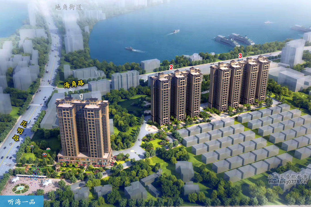 听海一品(项目案名:富贵轩),位于昆明路与海角路交汇处东南方向、群和市场(或北海十中)前面。