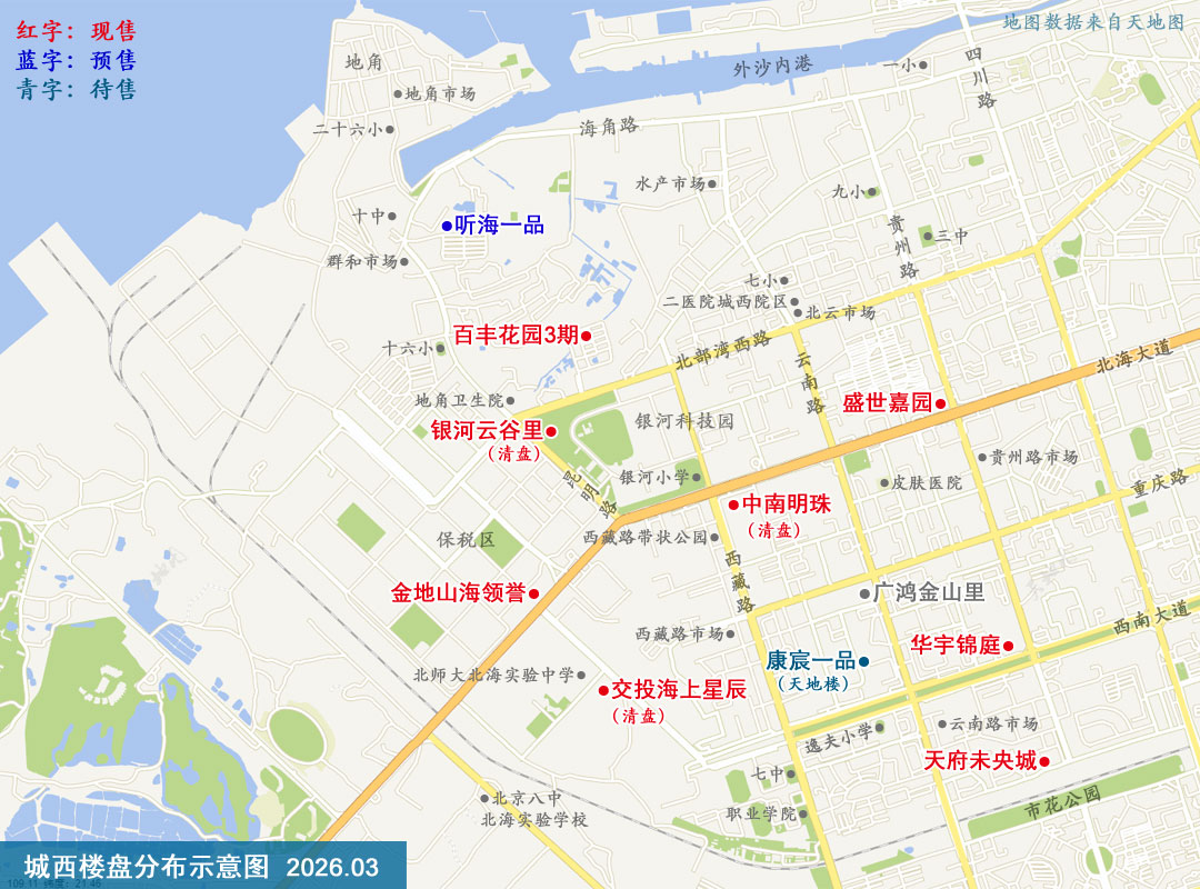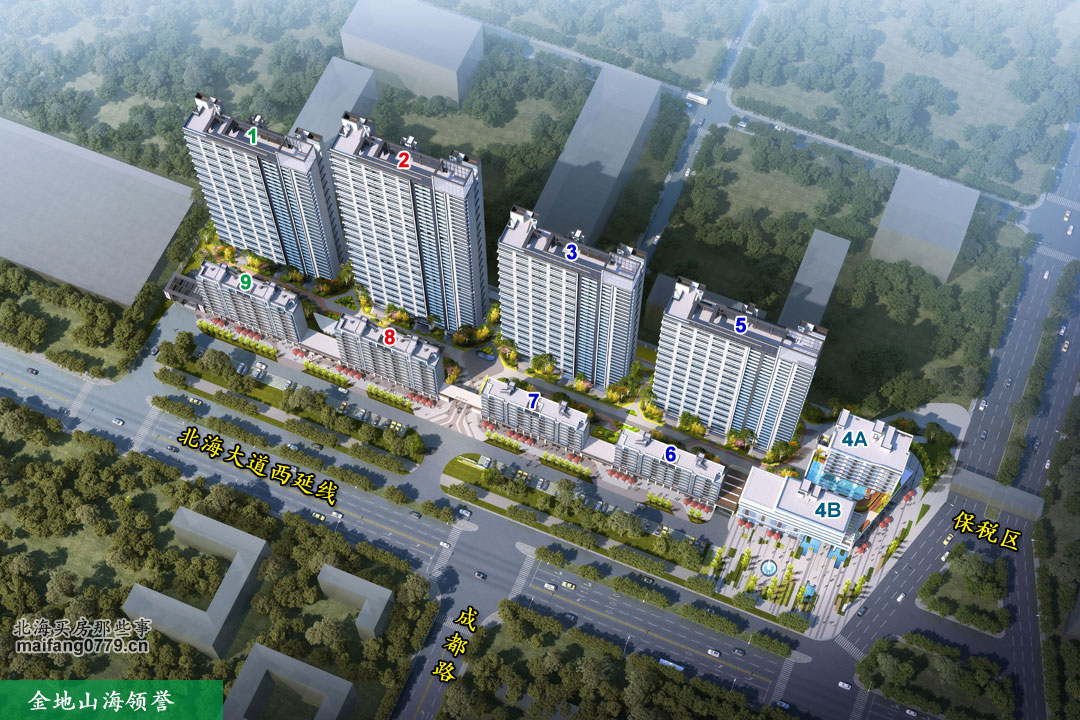 金地山海领誉(项目案名:山海领誉小区),位于北海大道西延线与成都路交汇处、保税区大门西边。