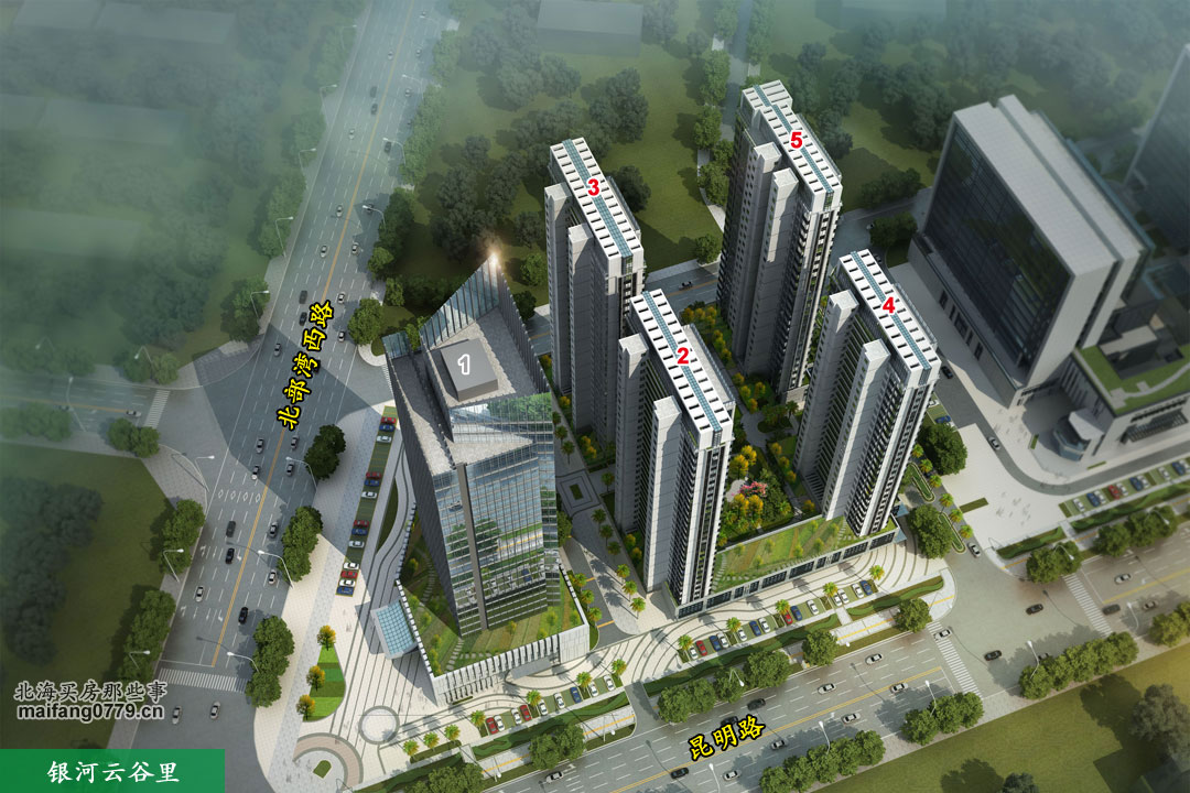 银河云谷里(项目案名:北海银河产业城云谷里),位于昆明路与北部湾西路交汇处东南角。