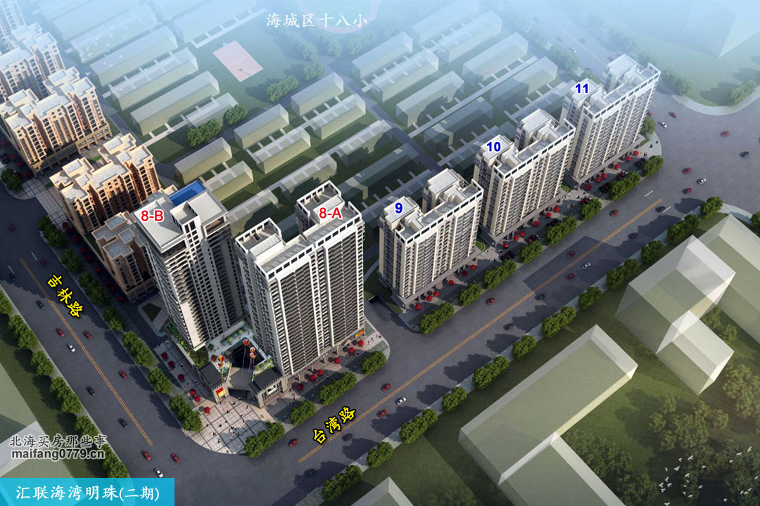 万顺翡丽湾(项目案名:中信国安北海第一城,开发企业:万顺房地产),大部分楼栋已经建成,上图标有楼号的楼栋目前现房在售。
