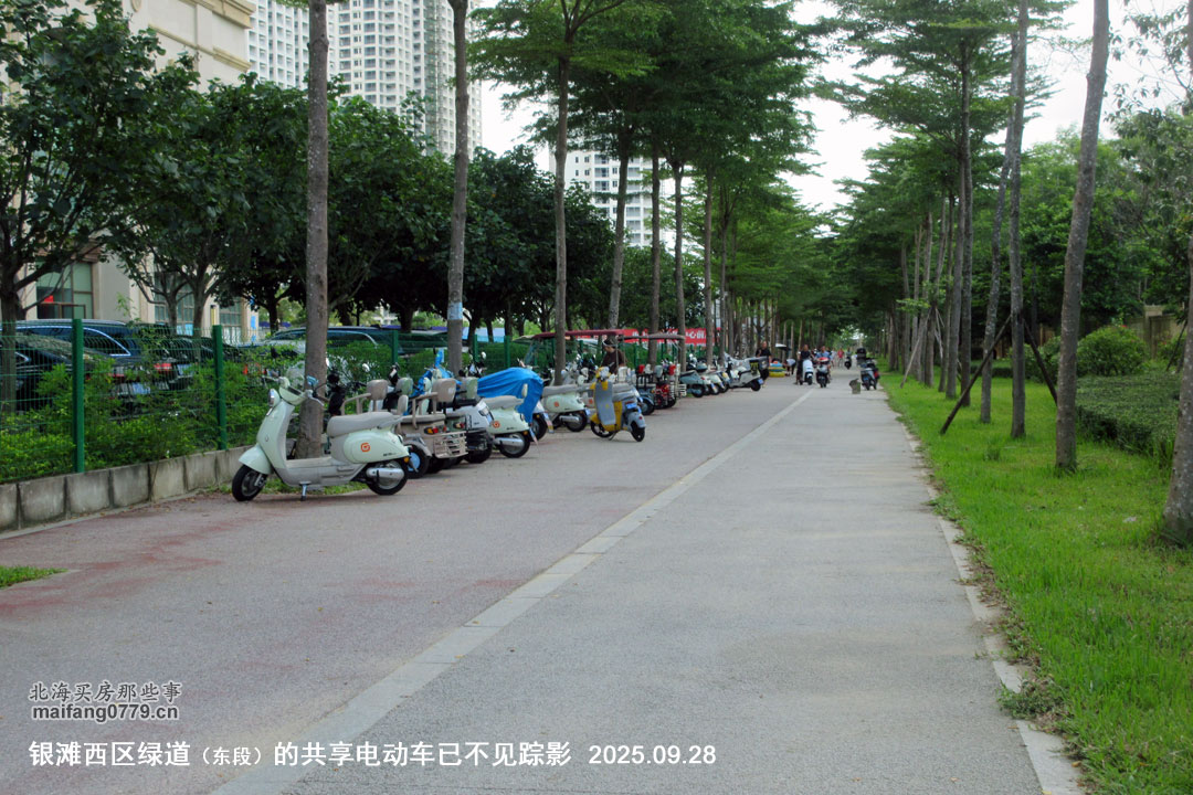 昨天早上到银滩西区绿道(东段)转了一下,壹海江山和海上邱园前面的共享电动自行车基本上见不到了,取而代之的是租赁电动车。