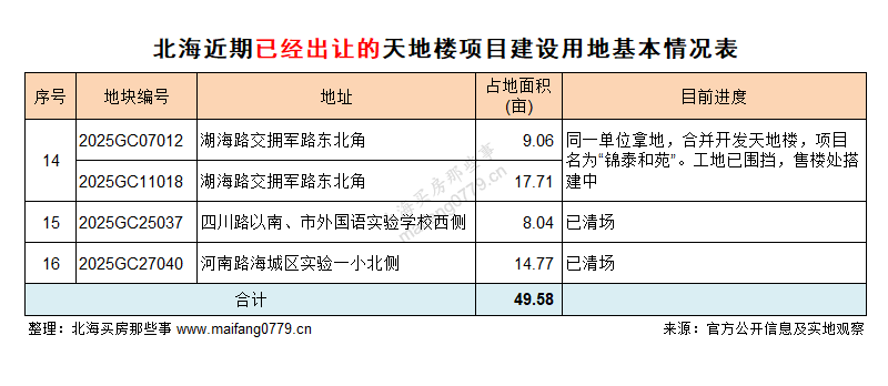 截至昨天(2026年3月16日),北海新建天地楼项目已经出现了13个: