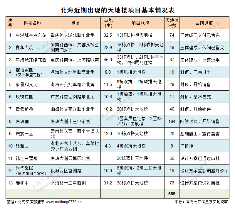 从上面介绍的项目数量来看,今年北海新建的天地楼项目有可能达到19个,供应量也许会超过1000户。