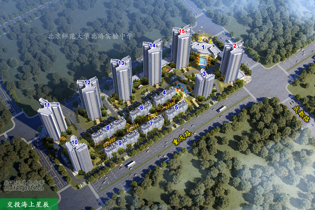 交投海上星辰(项目案名:海上星辰家园),位于重庆路与成都路交汇处东北角,与北京师范大学北海实验中学(原北京师范大学北海附属中学)为邻。