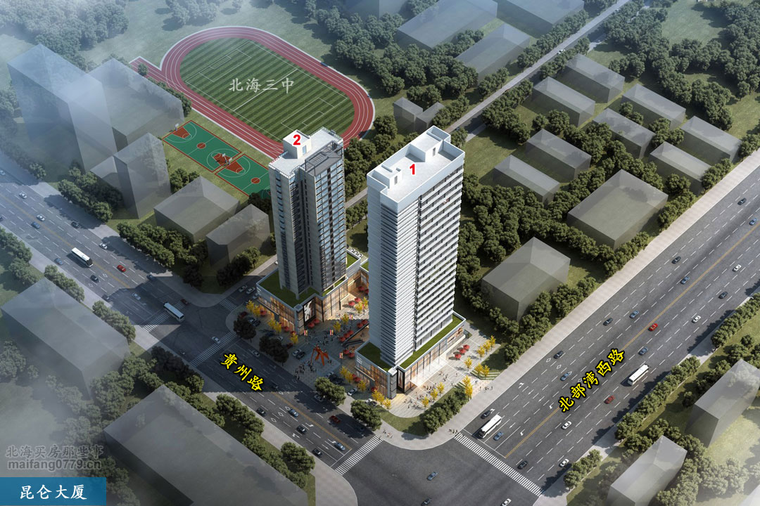 昆仑大厦,位于北部湾西路与贵州路交汇处东北角。