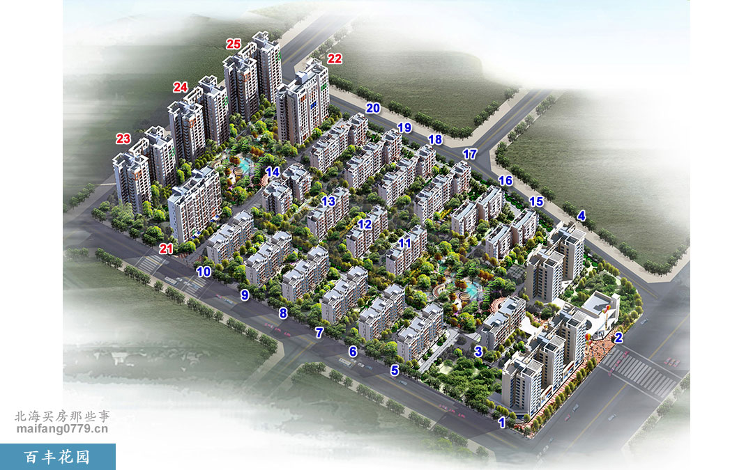 百丰花园,位于北部湾西路北侧、西藏路至昆明路中间。