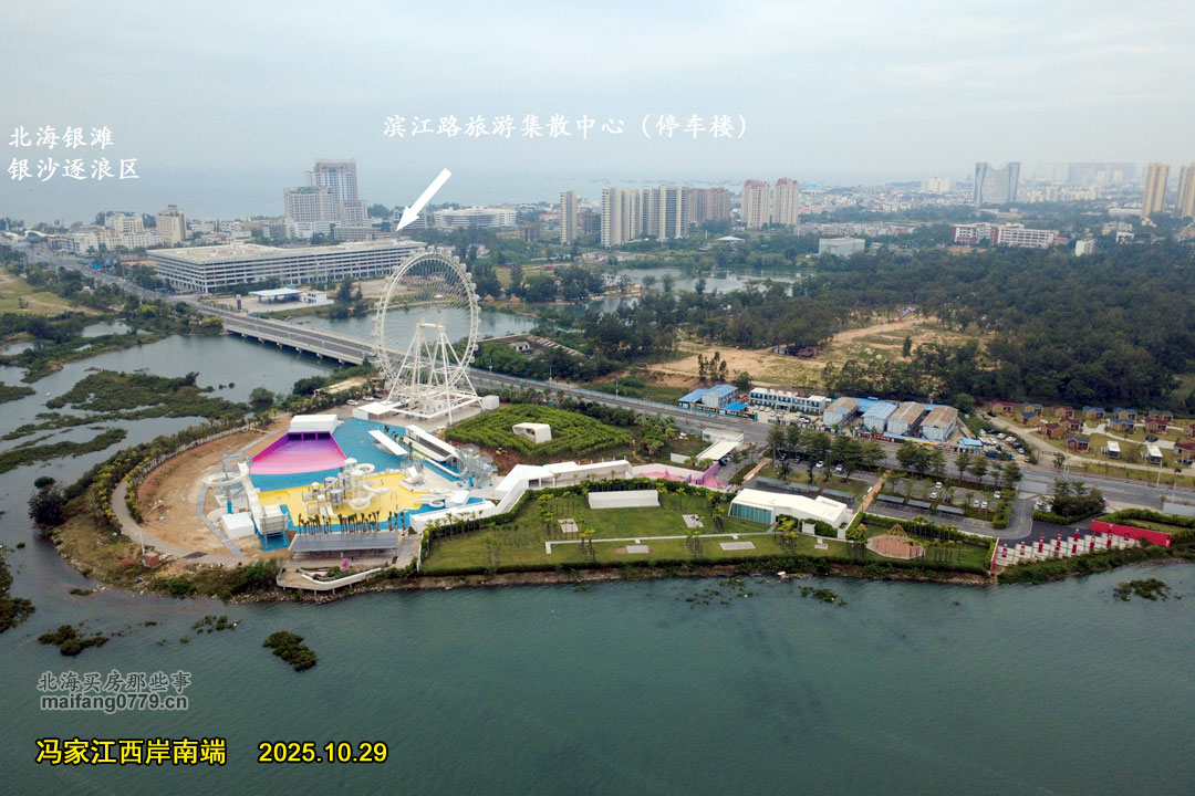 这个摩天轮在北海银滩“银沙逐浪区”(原银滩公园)的北面,占据了冯家江目前观江赏海的最佳位置。