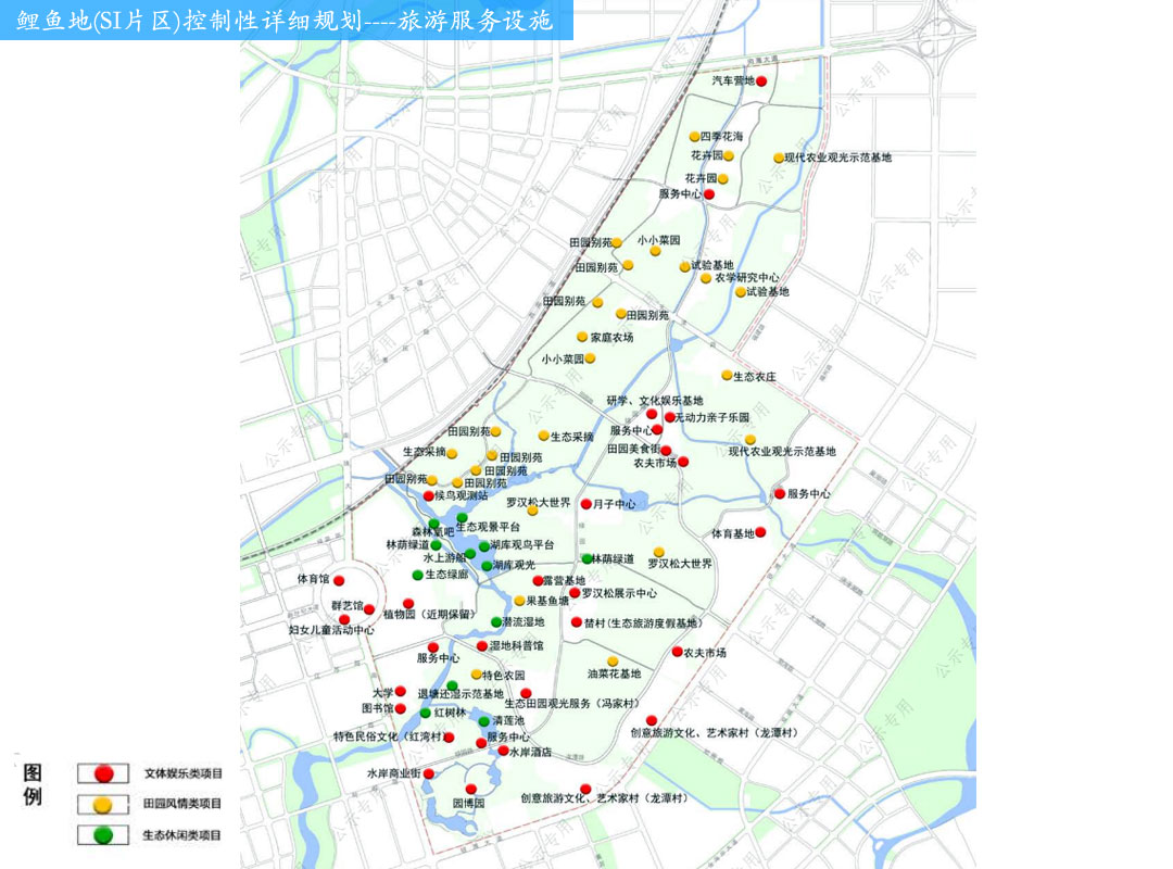这是鲤鱼地规划公示方案的“规划结构图”。中间大部分都是绿色生态区,但边缘部分有“新行政中心”、“乡村活力区”、“生态社区”——这3个部分应该会出现大量建筑体。