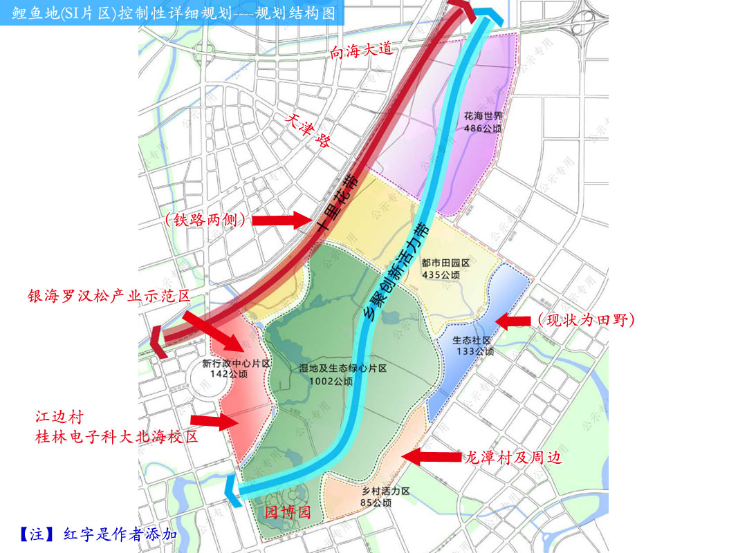 5月11日,北海市自然资源局发出“关于鲤鱼地(SI片区)控制性详细规划公示的公告”,对北海市当前城市总体规划“一湾一带、一心一核”里面的“一核”(鲤鱼地生态绿核)首次公示规划方案。