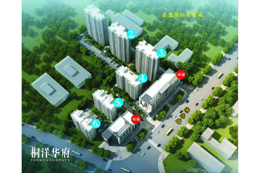 桐洋华府,位于湖北路西侧、西南大道以西。小区北边是东盟国际商贸城。
