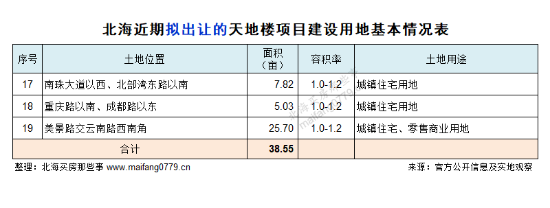 今年2月13日,北海市自然资源局发出国有建设用地使用权公开出让预公告,准备近期出让3宗天地楼项目用地。
