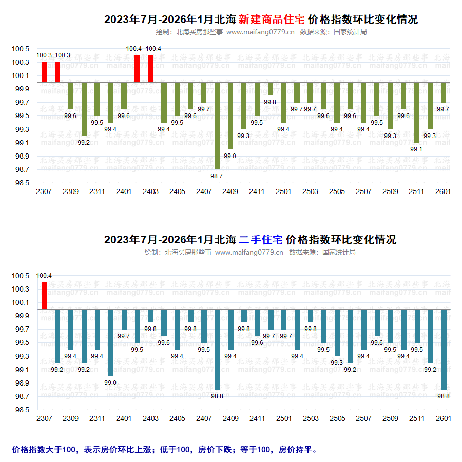 (2)北海二手房(二手住房)的成交价格已经连续环比下跌30个月(从2023年8月开始下跌)。